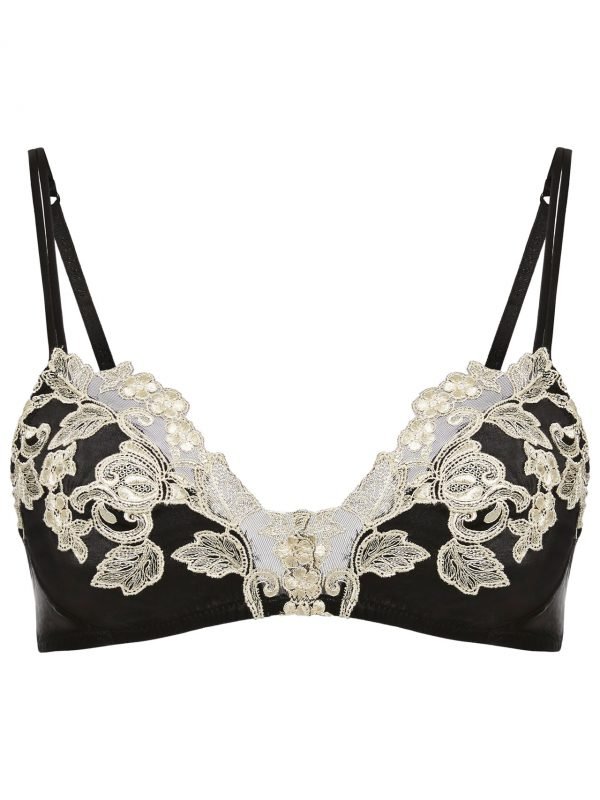 Black silk Push-up Bra with ivory frastaglio