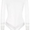 The Layla collection gives Leavers lace a bold update in oversized blossoms, with a hint of stretch. These youthful, eye-catching motifs are a perfect example of expert craftsmanship, made modern against panels of Lycra. This underwired bodysuit flatters with a plunging neckline and shape-enhancing padded cups. A lace insert adds floral patterns under the bust. It has a moderate coverage cut and a seamless construction that allows it to remain invisible under clothes. This style is available in a wide size range, accommodating larger busts.